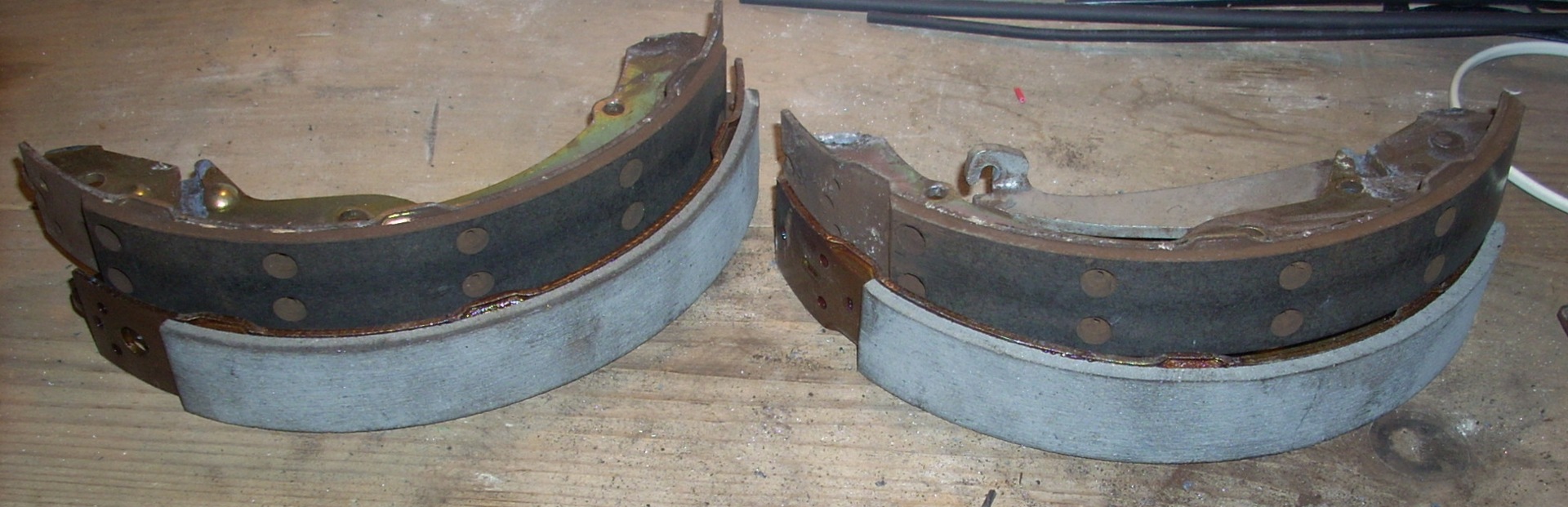На фотографии, чисто визуально, накладки одинаковы, и что бы и избежать дальнейших комментариев про шило и мыло, скажу что после замены я проверял задние тормоза и ручник на роликовом стенде эффективность торможения возросла на 15,5% процентов, по сравнению со старыми. Считаю обсуждение темы смысла законченной ;)