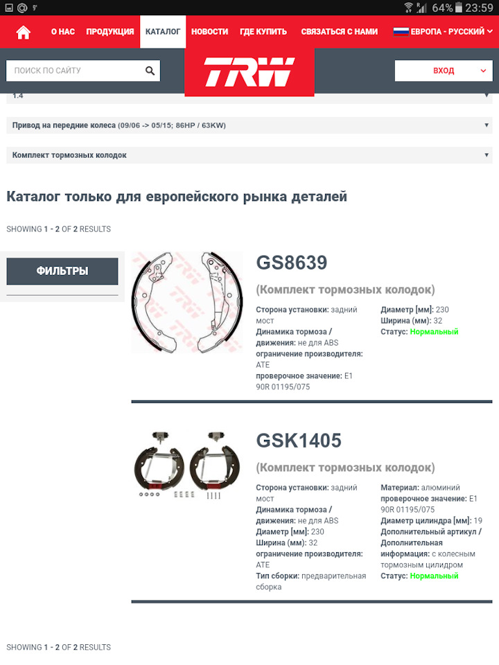 Хочу поменять задние колодки на сайтах пишут модель TRW GS 8639 что не для АБС . У ВАС АБС УСТАНОВЛЕНА?