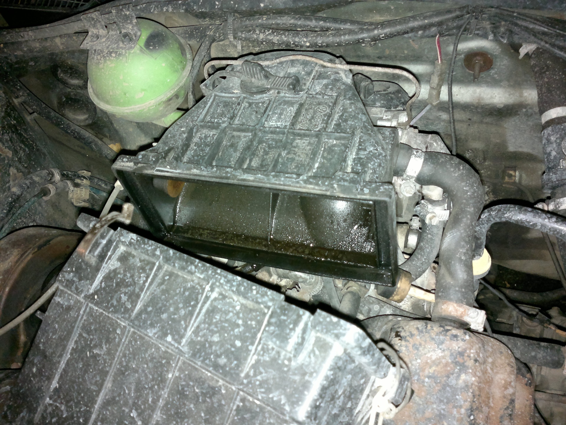 В тот же день забрал у хорошего знакомого в Дилижансе подушку, крышку и бегунок новые, положил в багажник и начал катать с собой. Так же забрал воздушный фильтр, ибо свой я на работе вытащил и передо мной предстала ужасная картина.