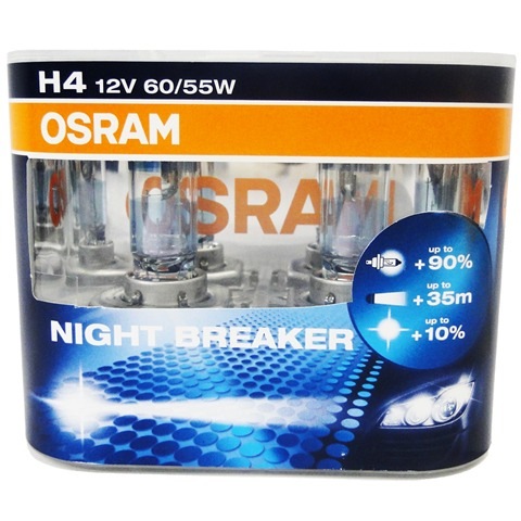Обеспечивая на 90% больше света и на 10% более белый свет, новые лампы Osram Night Breaker +90% являются одними из самых ярких галогеновых ламп на сегодняшний день. Больше света для лучшей видимости. Лампы Osram Night Breaker расширяют привычные границы видимости и являются на сегодняшний день одними из самых современных галогеновых ламп на рынке. Используемое при производстве ноу-хау и новый дизайн позволили увеличить световой поток ламп Night Breaker на 90%! Освещение дорожного покрытия значительно усилено — длина освещенной зоны увеличилась почти на 35 метров. Кроме того, улучшена освещенность правой кромки дороги. Теперь Вы лучше видите то, что что раньше скрывала темнота.