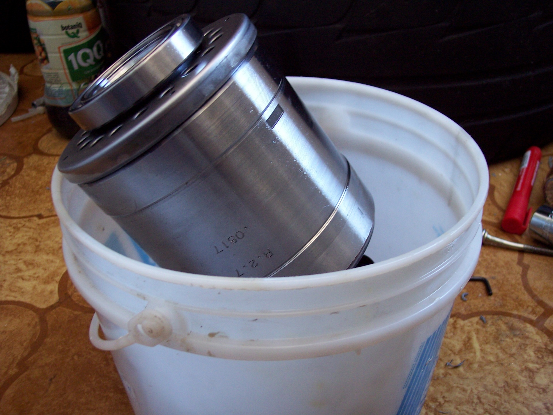 8. И ставим стекать. Масла там налито по самые «помидоры» (следовательно, заливать до верха): как только начал откручивать оно сразу вылилось под давлением. Поэтому, сальники менять не буду, держат хорошо. Ну а цвет масла Вы видите сами… Слегка воняет, ничего критического.