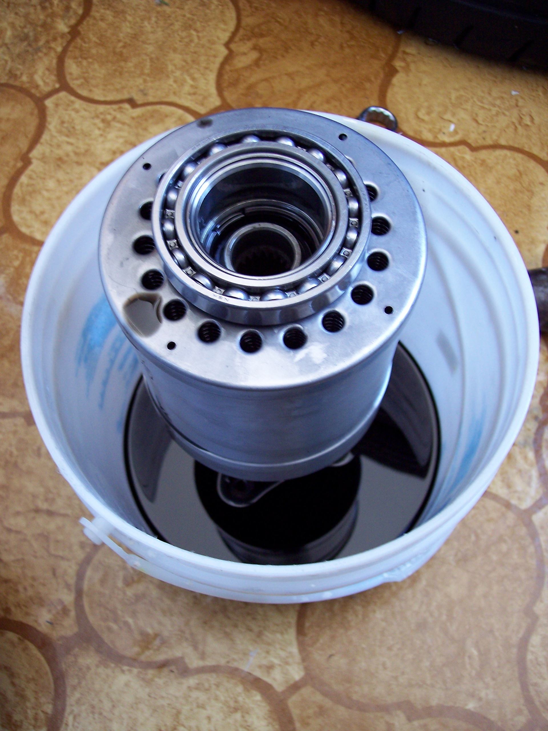 После того, как все сольется, кладем муфту горизонтально . Это надо для того, чтоб масло стекло с переднего внутреннего углубления. На данной фото (взято с wingroad.ru) его отлично видно. То есть, когда мы просто сливаем основная грязь не уходит из муфты, а просто перетекает в данное углубление. В общем, ждем, чтоб масло вытекло из углубления примерно 10 минут и ставим масло сливаться заново, как бы диагонально. Смотрите фото. У меня слилось 4мл, причем чернюшные=)