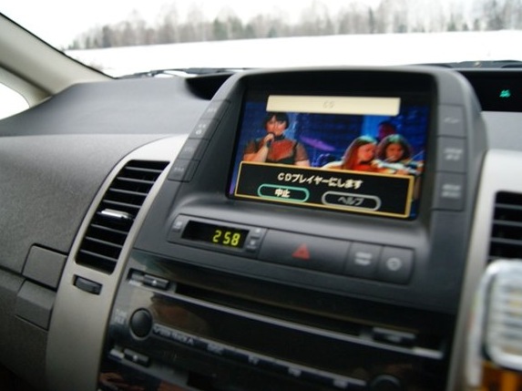 Ну вот и заставили мы наш Приус принимать телевизионные каналы российских телеканалов! (заставили мы его это делать ещё 2 месяца назад, написать времени просто не было!)…Всё очень просто. С помощью общих усилий форумчан drive2, Дром и Приусфорума узнал, что есть ООО "Вега — абсолют" в славном городе Новосибирске (где я частенько тоже бываю), которое занимается производством ТВ-тюнеров для иномарок…сделали заказ, оплатили…и через неделю получили заветную коробочку! Сам ТВ- тюнер обошёлся нам в 5670 рублей вместе с доставкой. Устанавливал сам…ничего сложного! Самая проблема была в разборке обшивки багажника…чтобы снять всё хорошо и не повредить клипсы…В течении 30 минут сняли обшивку багажника (левую часть), сняли "родной" ТВ-тюнер…вместо него установили "Вегу", собрали…и… наслаждаемся российскими телепередачами в японском Приусе! :))) Приём отличный…даже при движении автомобиля! В городах типа…Ульяновск, Саратов, Ижевск, Набережные Челны…ТВ-тюнер "ловит" 9-12 телевизионных каналов! В дальнейших планах будем устанавливать ДВД. Выкладываю фото установки своего ТВ-тюнера…качество конечно не айс…фотографировал сотовым телефоном…Честно скажу…было дикое желание заставить работать родной ТВ…даже руки тряслись от волнения! (Шучу конечно!)…не было времени бежать домой за фотоаппаратом…, а было лишь одно дикое желание…воткнуть русифицированный ТВ — тюнер и поймать российские ТВ-программы в Приусе!..Также отлично разобрался с голосовым управление Приуса…Всё работает отлично! Особенно прикалывает то, как шокирует местных обывателей (даже владельцев дорогих иномарок) голосовое управление. Все основные фразы выучил наизусть…даже лень теперь просто на руле что-то переключать…балуюсь японскими командами.типа ."Тэрэби, Сиди ин, Радзио, Одио, Трак кадан/ап/даун, Хардо диску, Ондо о агэру/сагэру (сукоси)…и тд! :))))) Также в записную книжку скинул по Блютузу номера телефонов…разобрался не до конца конечно…и удивил такой нюанс…Приус категорически не хочет принимать в записную книгу номера с телефонов Самсунг…с Нокией отлично дружит!