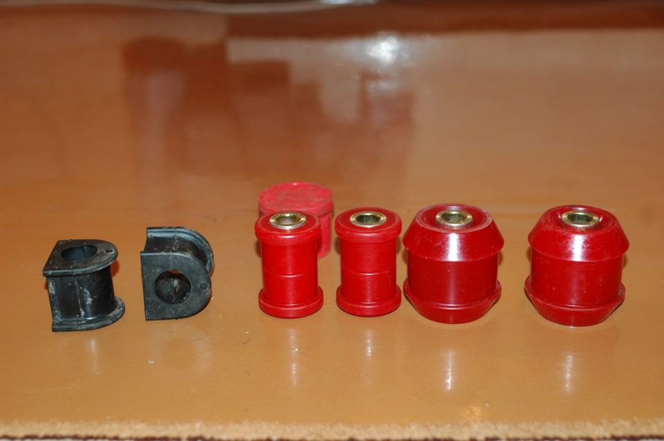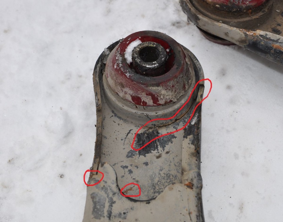 у меня тоже рычаг порвало. Практически в том же месте как у тебя. Только у меня не такой фирмы, но тоже красные. у меня Protane. заказывал из Америки весь комплект и на перед и на зад, и под стойки. они потом ещё и скрипеть начали у меня — в общем нах**й этот полеуретан.