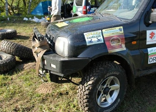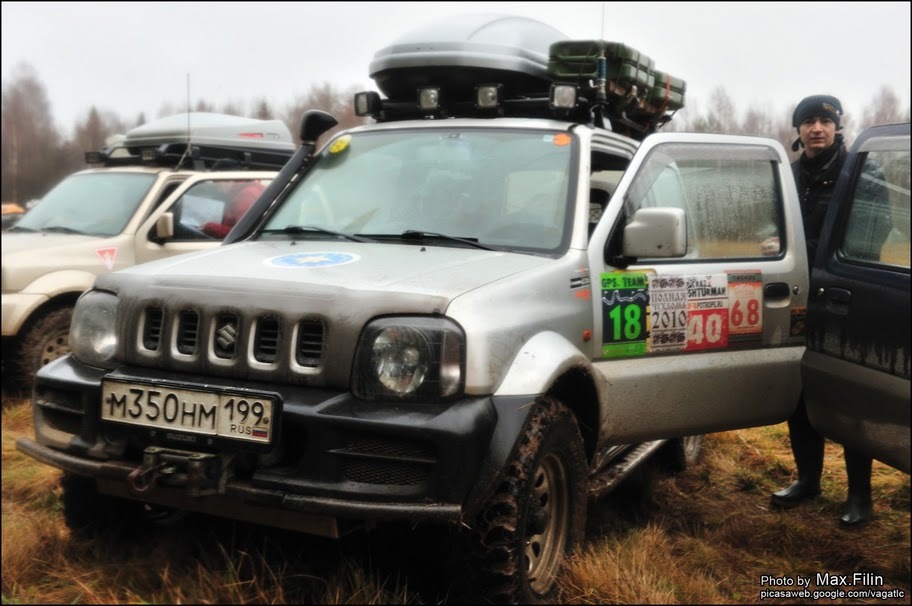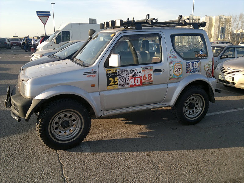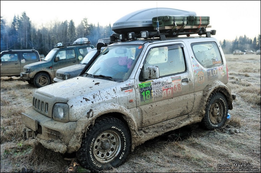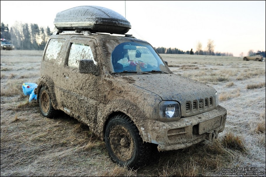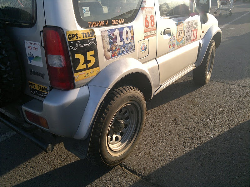 А вот для сравнения стоковый джимник на стоковых же мудовых колесах. Ездил вместе с предыдущим.