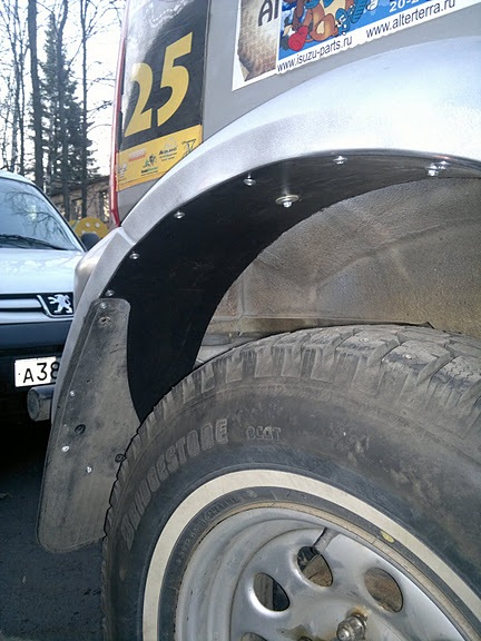 вид действительно красивый. но тратить 15 штук на боевую машину я в итоге постеснялся. резиновый расширители которые выполняют ту же функцию но выглядят гораздо страшнее стоят всего 2 штуки. Такие я в итоге и решил поставить поскольку машина только для соревнований. Была бы промежуточная — покатушечно-экспедиционная — поставил бы стеклопластик.