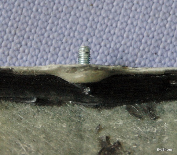 А вот заделанный болт, который позволяет крепить фендер гайками в штатные отверстия.