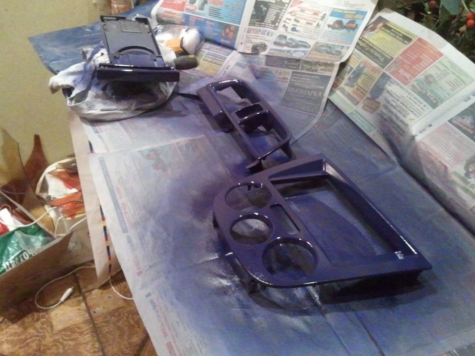 Покрасил. Синяя авто-краска из балончика. Красил в 3 слоя с межслойной паузой в 5-10 минут с обдувом теплым феном. Фоткал покраску первых деталей потом красил без фотоотчета да и так понятно что красить надо все ))
