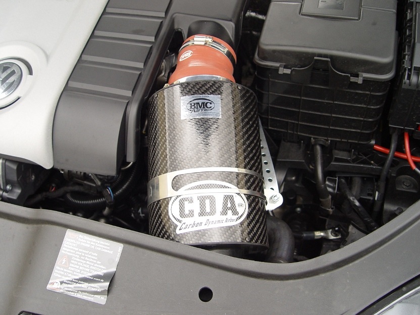 BMC CDA — Система динамического наддува CDA состоит из карбонового корпуса цилиндрической формы, который содержит долговечный моющийся фильтрующий элемент. Замена штатного корпуса оригинального фильтра на карбоновый корпус приводит к непосредственной подаче воздуха в фильтр, откуда поступает в камеру сгорания через специальный расширенный воздухоотвод, обеспечивающий максимально облегченное прохождение воздушного потока (система запатентована). Комплект CDA также включает в себя алюминиевый гофрированный патрубок (длина 60 см) предназначенный для подсоединения системы фронтального забора холодного воздуха. CDA поставляется в двух вариантах: Tipo 1 для двигателей объемом до 1600 см3, Tipo 2 для двигателей с объемом более 1600 см3. Кроме того, каждый из двух типов, доступен в различных диаметрах. Множество тестов на автодромах доказали эффективность системы динамического наддува CDA. Самый весомый факт — фильтрами этой итальянтской фирмы оснащаюстя болиды FORMULA-1