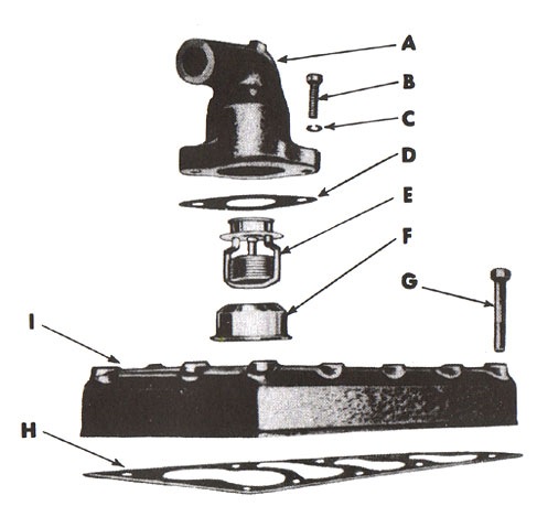 Головка двигателя, термостат с корпусом термостата