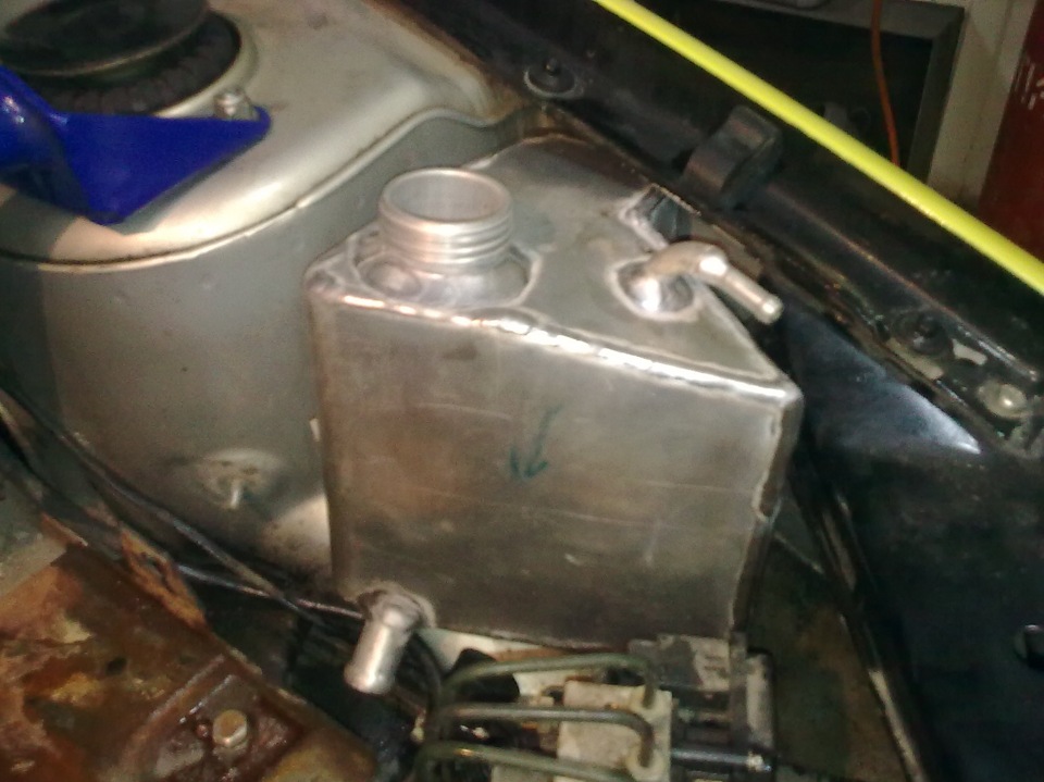 За два года эксплуатации, лопнуло два расширительных бачка, причем в самом не подходящем месте, вверху и под давлением выгоняет антифриз, решил сделать бачок из алюминия, как это делают автогонщики в автокроссе.