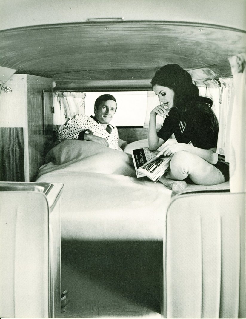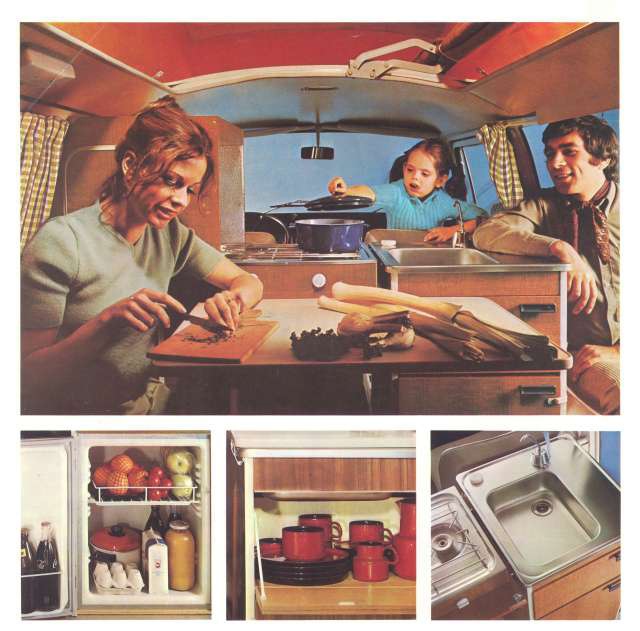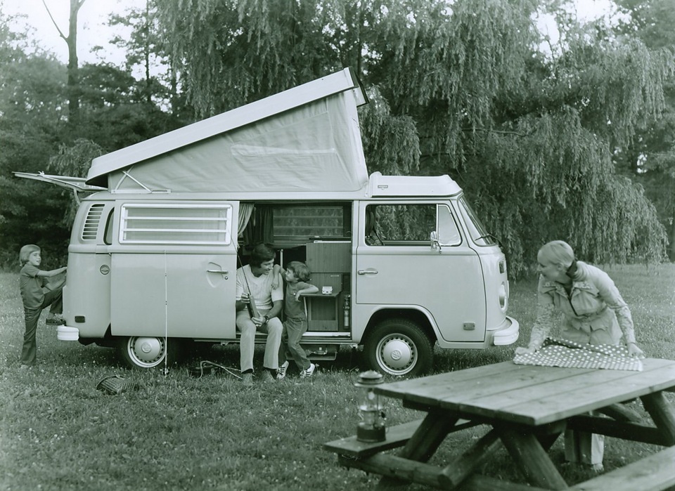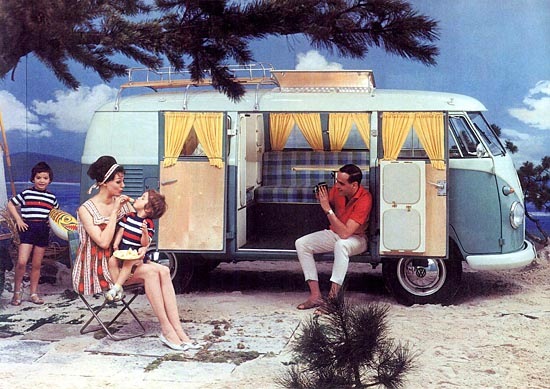Воплощение этой идеи я нашёл быстро — читая о комплектациях классических микроавтобусов Volkswagen на немецких и английских сайтах, я наткнулся на информацию о кузовном ателье Westfalia, которое превращало самые обычные пассажирские микроавтобусы Volkswagen Transporter, начиная с T1, в настоящие кемперы, т.е. дома на колёсах — устанавливало внутри салона задний диван, раскладывающийся в кровать, также гамак-спальное место для ребятёнка (передние сидения), раковину, плиту, различные шкафчики для одежды и вещей, а в более поздних выпусках, начиная с Т2 – холодильник, различную электрику (например, радиоприёмник) для более комфортных путешествий, автономные (стояночные) отопители и даже кондиционеры!