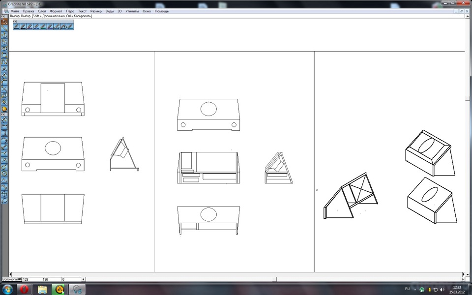 Всем доброго дня. Близится отпуск который грех не отдать в жертву звука :) Это увлечение постоянно заставляет подтягивать знания школьного курса математики, физики, химии, геометрии и т.д. Вот теперь настало время вспомнить черчение и инженерную графику :):):) Надумал я перепилить коробок. Тот что сейчас установлен расчитывался под более слабые сабы и усилители и в данный момент несмотря на распорки и усиления отчаянно начинает раздуваться. В общем проще спилить новый короб а этот отдать начинающим аудиофилам. А раз уж пилить новый короб то почему бы не организовать всю систему более толково в том числе и усилители в ящике.Внешне же коробок останется очень похожим с нынешним. Работы короче море. Пока затея на стадии завершения обмеров и построения масштабных чертежей.