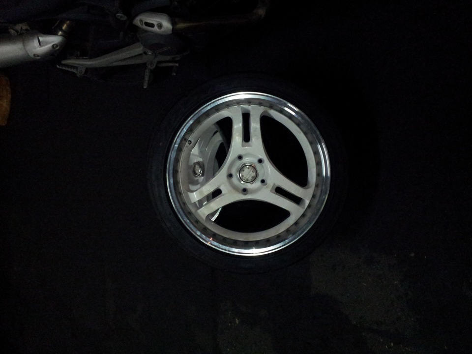 Потихоньку подкрадываются теплые дни — пришло время собрать летние катки. Еще в том году были куплены диски ADVAN r18", ширина 10". Разобраны и отданы на покраску — хотелось выделить сердцевину под цвет кузова. Резина на них встала с параметрами 265 35. Получилось более чем отлично!