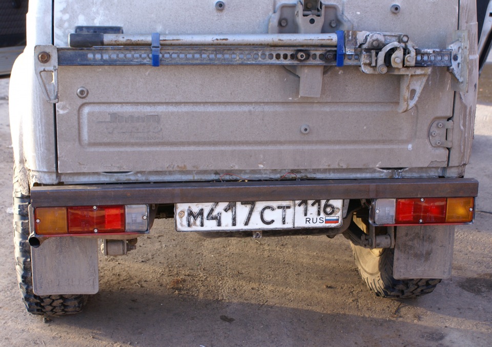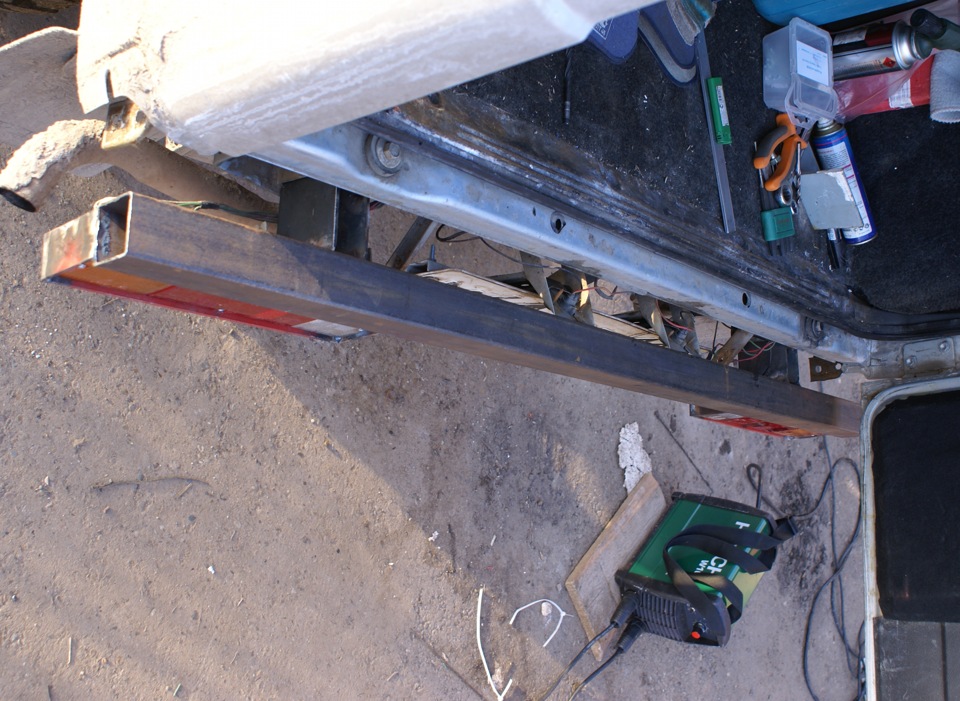 Потеплело пришло время приводить в прядок машинки. Как раз пришли контрактные задние фонари. За полдня был сварен и инсталлирован прототип заднего бампера из 60мм профиля. По крайней мере за него можно беспроблемно джечить машинку.