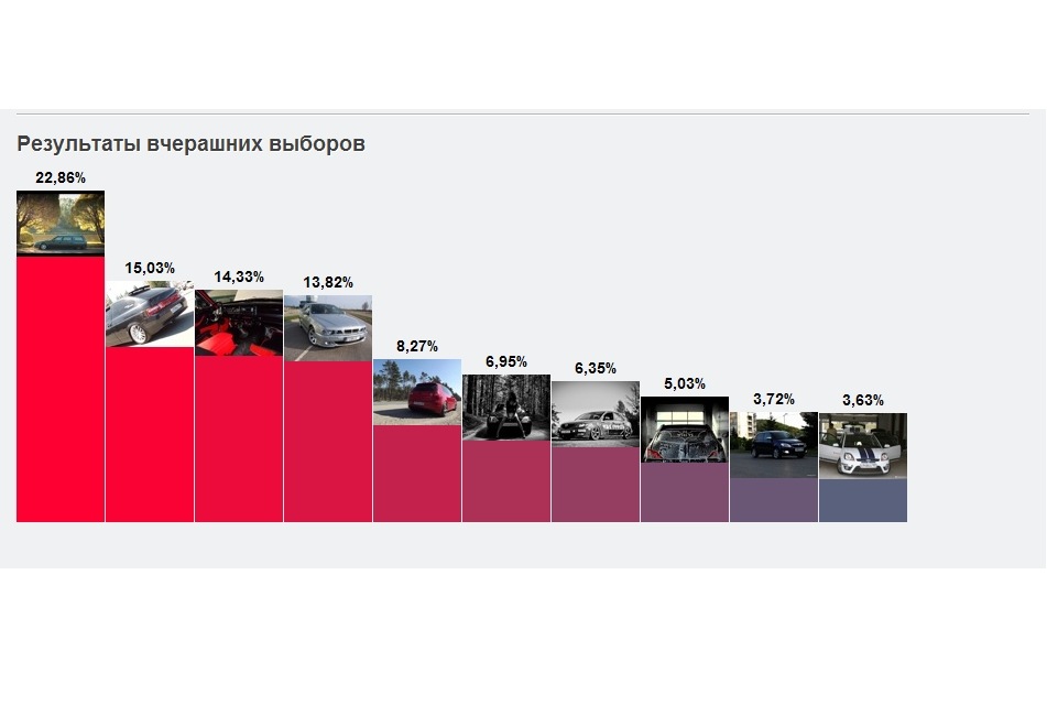 уверен если бы люди которые голосовали ознакомились со всеми работами. внимательно почитали БЖ а не оценивали по 1 фото и по тому какое у самого авто, то мы бы сейчас праздновали победу))))