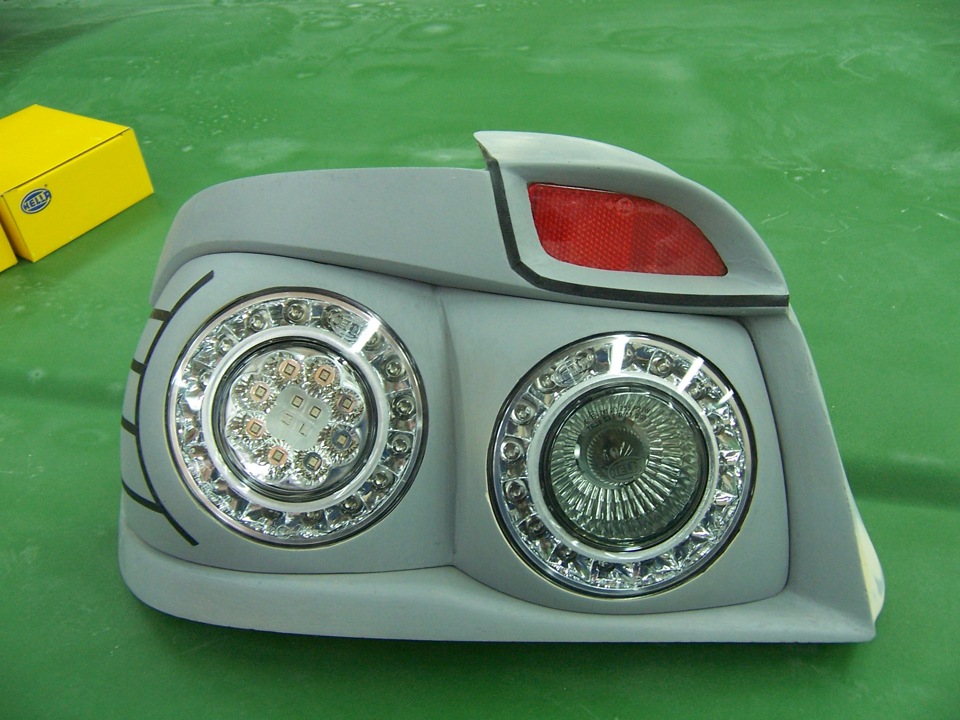 Я уже хотел ещё 1 поворот брать, снимать с него колпак и менять диоды на красные и ставить другой, самодельный колпак. Другой думал сделать так: снять красный и снять с него литьевую форму из резины, затем залить прозрачными смолами и получилась бы точная копия красного, только прозрачная. Но и тут Хелла меня подставила… На красном стекле маркировка нанесена изнутри краской. а не снаружи выпуклая как у других фонарей…