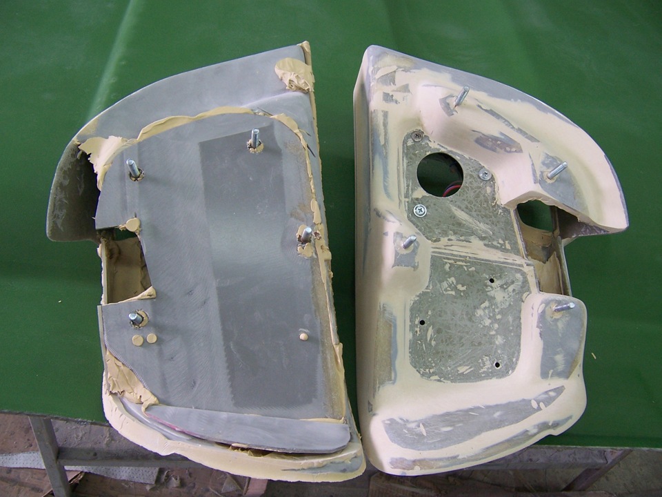 а вот для сравнения ещё нетронутая задняя часть подиума, на которой видно стоковое положение ноги крепления (слева) и уже переделанный подиум(справа).