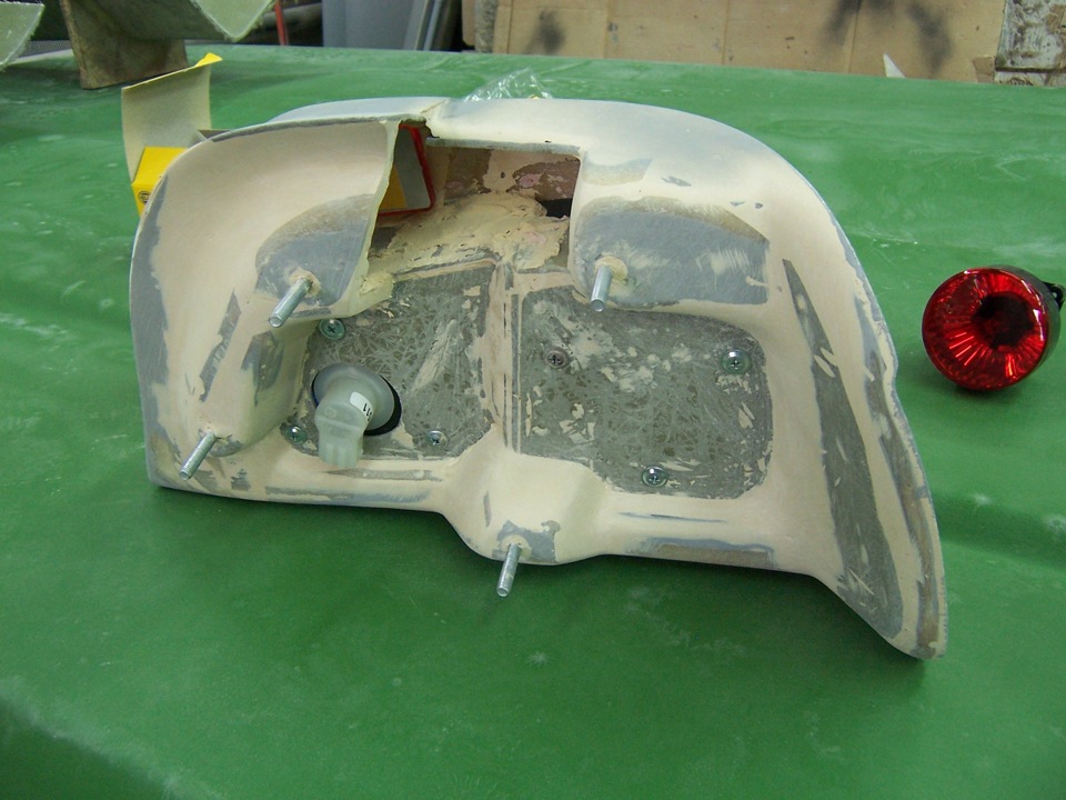 Сразу понял что нужно чуток переделать заднюю часть, поскольку внутренний фонарик невозможно будет закрепить и так же при поклейке возникнут проблемы. Поэтому я всегда настаиваю в начале проекта, чтоб все комплектующие под рукой были сразу и тогда непридётся одну и туже работу делать дважды. Заднюю часть снова резал флексом для точной установки лампочного фонарика.