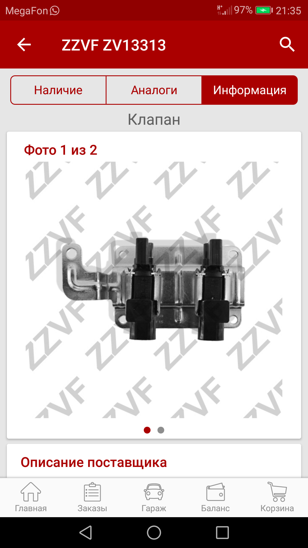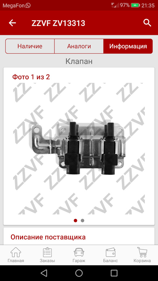 Есть один рабочий клапан оригинал