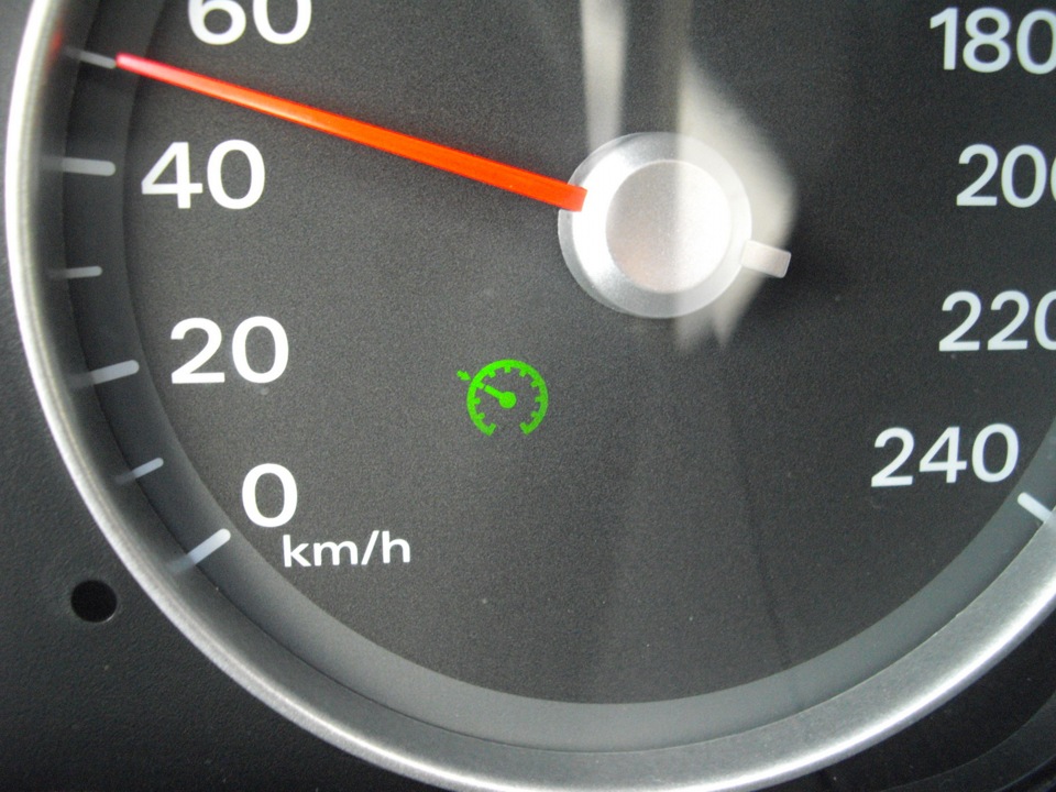 Значек на панели присутствует, скорость держится, а нога отдыхает.