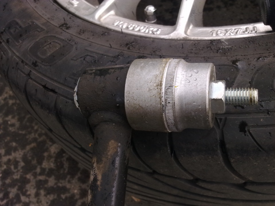 Теперь главное: нам понадобится болт М12 (пойдет и М10)пара шайб на этот болт, гайка на него же и головка на 32. Чем длиннее болт, тем удобнее – у меня был см 10 длинной, приходилось перекручивать по нескольку раз. Можно взять шпильку (тогда нужно ещё 2 гайки с другой стороны), а вместо головки – подходящий кусок трубы и т.п.