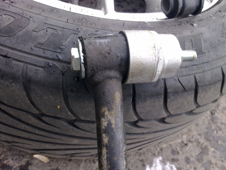 Это на примере переднего рычага (там болты развалочные) на заднем не надо нагружать колесо, но в остальном идентично. Продольные я не поменял (пока) т.к. головки на 32 для них маловато – надо найти трубу, которая по диаметру совпадет с диаметром кольца на рычаге…