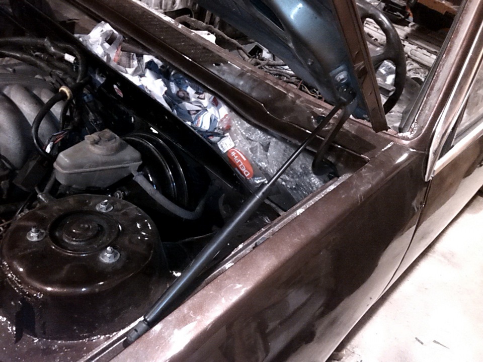 Наконец-то дошли руки до амортов на капот. Заказывал как от ВАЗ 2109, а по факту оказались от ВАЗ 2112, у них сила 460 ньютонов против 350 у девяточных, многовато, т.к. петли капота начало приподнимать в закрытом состоянии, поменяю их на другие (уже подобрал по характеристикам от Корсы Ц), но выглядеть будет всё точно так же визуально :)