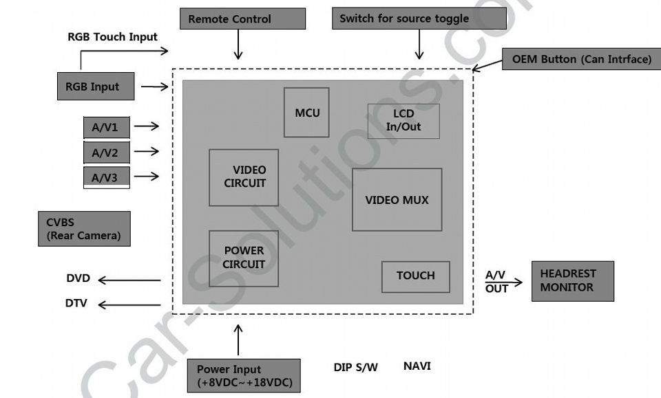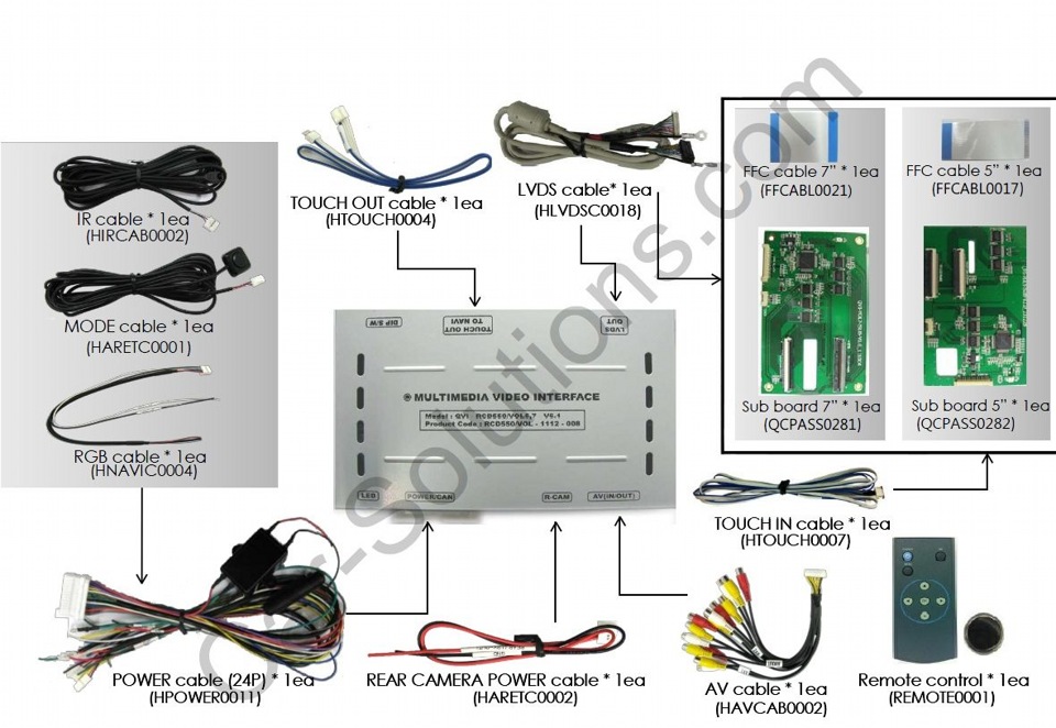 1. Видеоинтерфейс — эта самая главная железяка в этом деле, она изготавливается конкретно под модель машины и служит для подключения дополнительных видеоустройств, например, навигационного блока, камеры заднего вида, DVD-плеера, ТВ-тюнера, к штатному монитору.