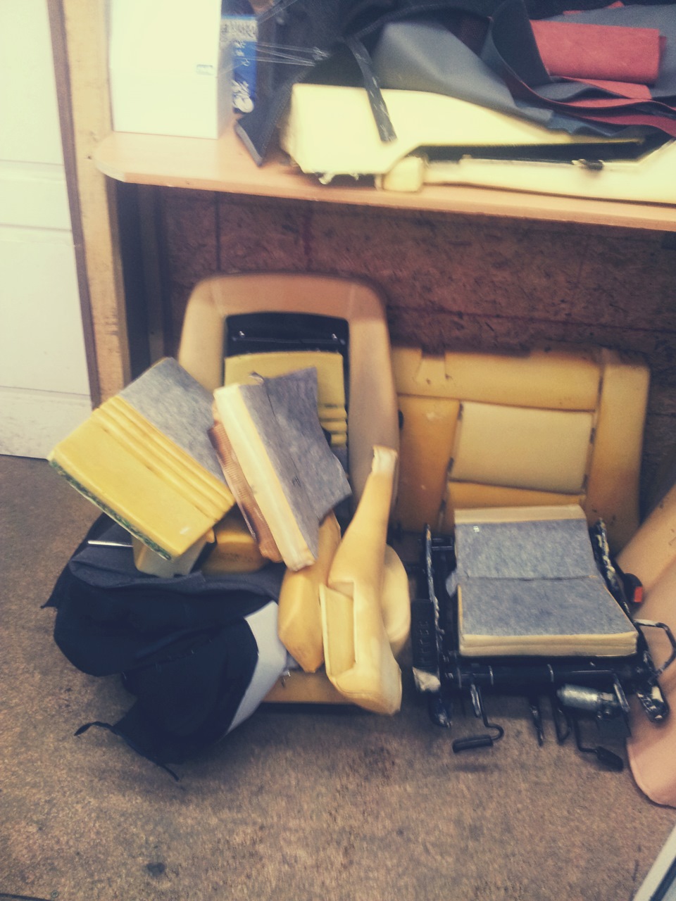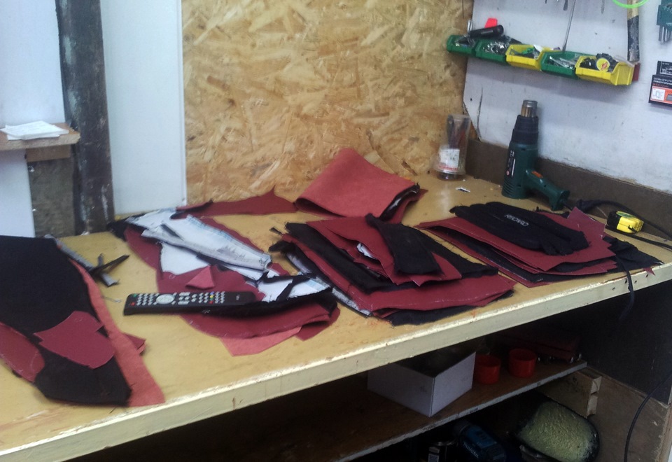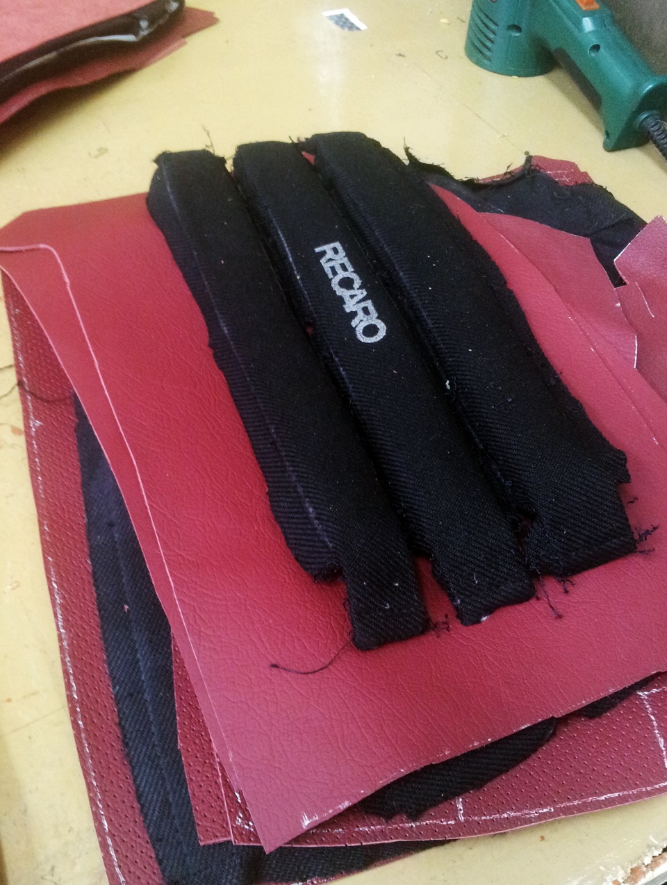 Ну и нарезка из кусочков необходимого размера, надпись RECARO останется на своем месте, только вышьют ее заново.