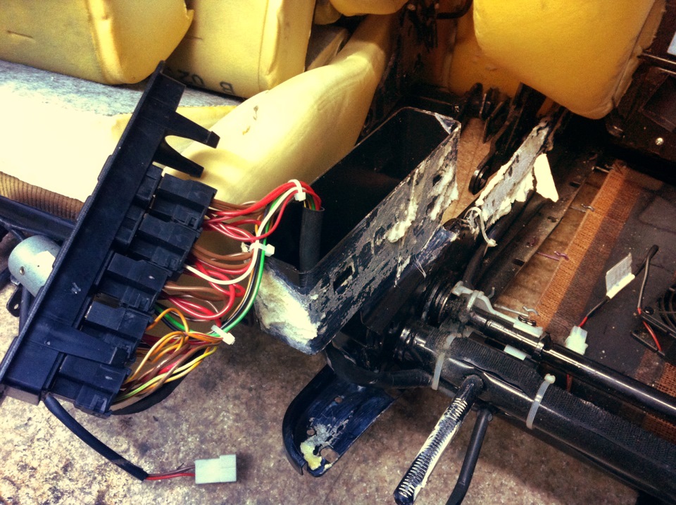 Вот место под пульт управления сиденьем, причем на пассажирском седле пульт и поддержку придется поменять местами.