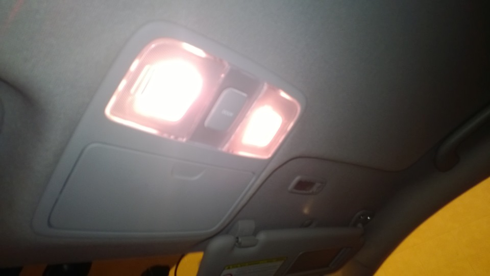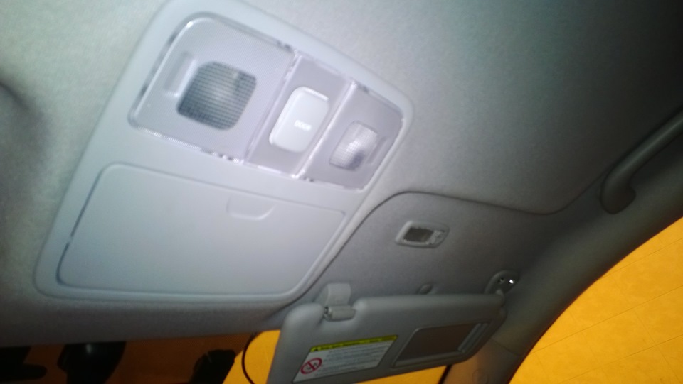 Сегодня установил центральный плафон с подочечником и плафоны подсветки зеркал в козырьках. Запитал все от центрального плафона. Провозился где то 5 часов с установкой. Плафон пришел больше родного и из-за этого возникли трудности с установкой.