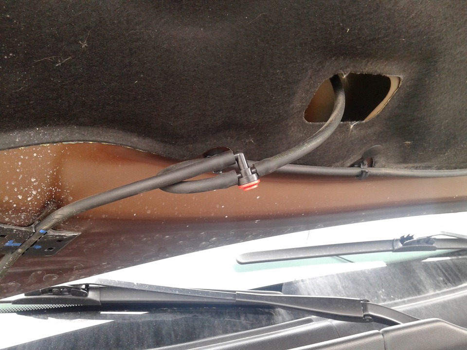 К сожалению не имел возможности сравнить скорости подачи воды с форсункой под капотом и на 5й двери, но как говорят люди — разницы нет. Хотя могу сказать, что клапан под капотом отлично себя показывает.