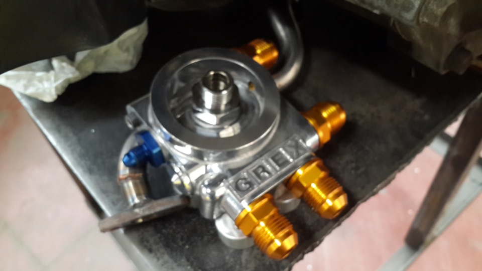 Изготовлен фланец-переходник под вынос маслофильтра, проставка к маслорадиатору с термостатом. КРАСОТА!