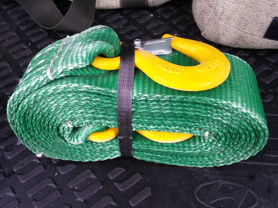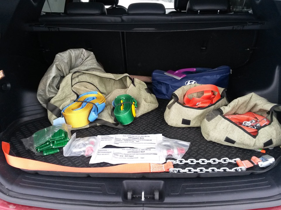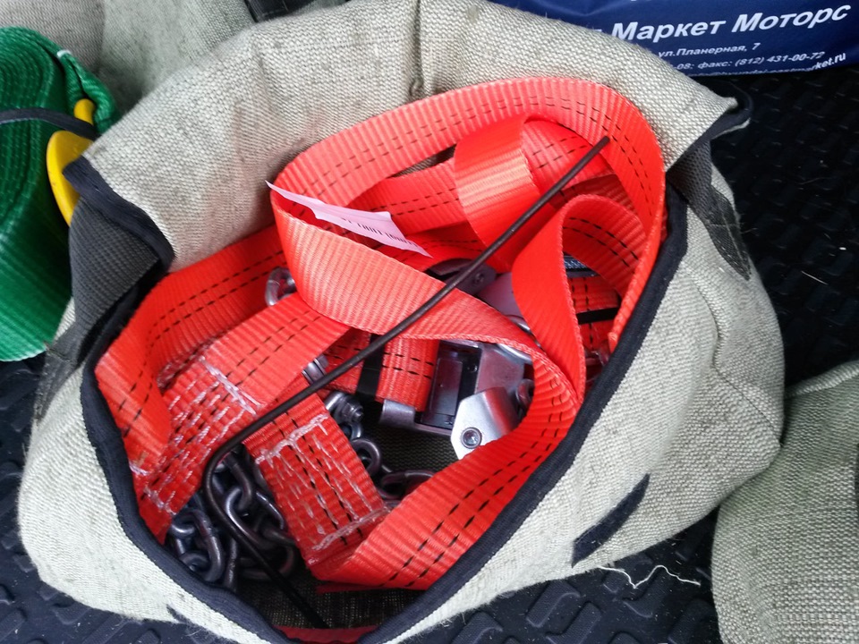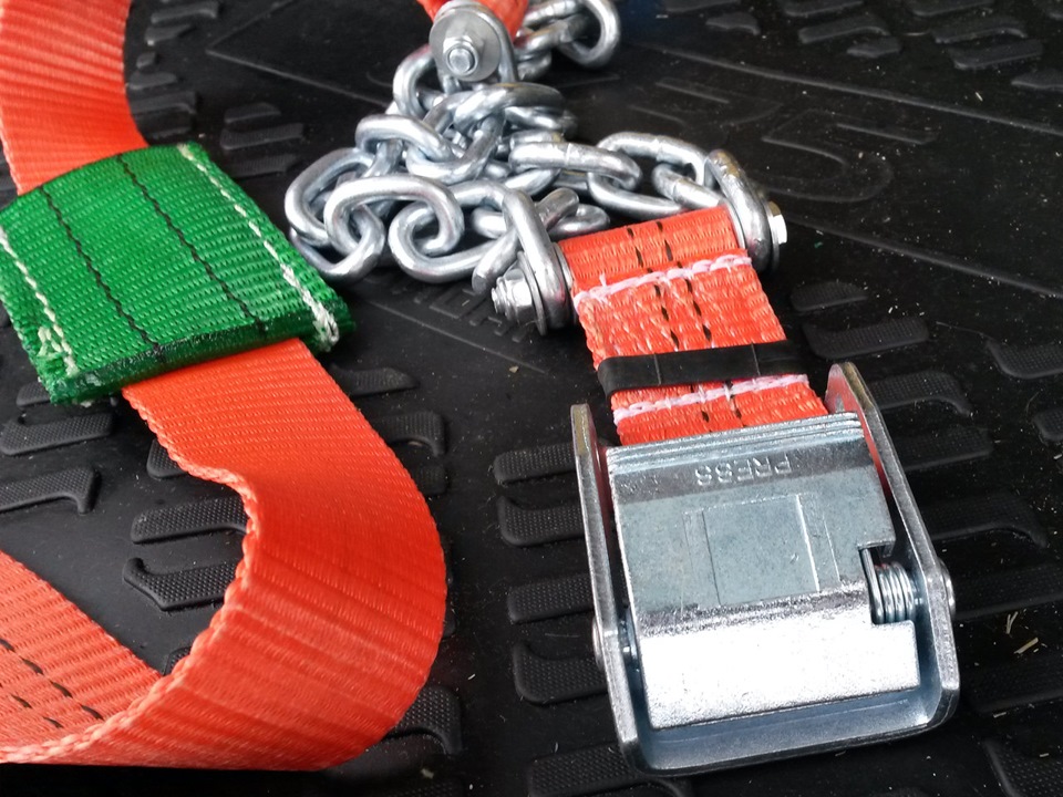 По сути ничего экстремального тут нет, обычные цепи противоскольжения на колеса и два троса. Один для простой буксировки, второй — динамический для того, чтобы дергать, не вырывая штатные петли. Все для авто до 2-х тонн, делается под заказ)
