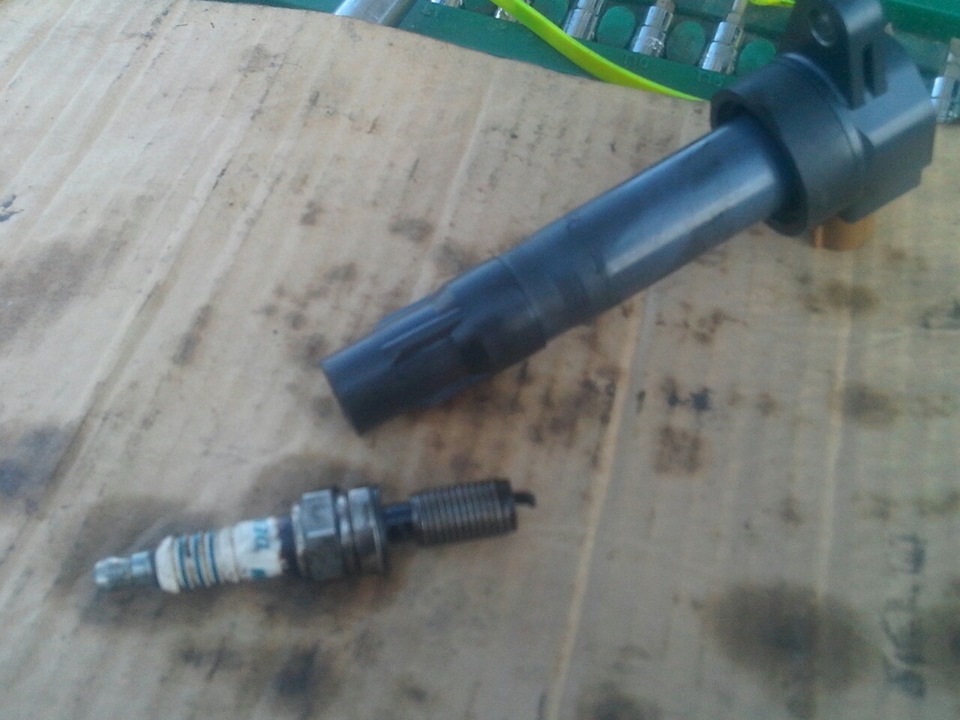 когда клапан менял, голову вскрывал поленился поршни вытащить, почистить. поджирал масло. решил сделать раскоксовку. сначало попробывал метод вода+ антифриз… через капельницу. сначало дымище стоял вонючий, с глушака вылетали какието хлопья, не помогло. жрет. решил дедовским методом ацитон+ керосин 50/50. выкрутил свечи, залил, подождал. закрутил, завел, дымище… обратно с трубы срань полетела. ну я на радостях ему газку поддал в подьем, слышу хлопок, остановился. мотор трясет. вскрываю. б****…:( пробило катушку 3го цилиндра, свечка развалилась. походу перетянул когда затягивал:( искре дется некуда было, нашла слабое место. прошила на свечной колодец(( чето прям какаето черная полоса пошла у джима… заодно стабилизатор снял:)