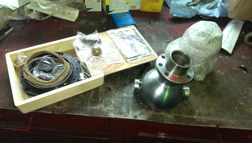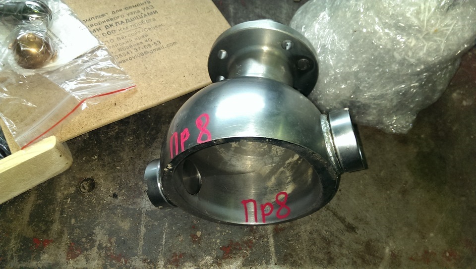 5. Валим кастор. Вот тут сварочником и кувалдой решил не обходится. ИМХО: пересверливать ШОПКу как то очково, а не дай БОГ прослабишь фланец и потеряешь кулак где-нибудь вдали от цивилизации. Поэтому заказал из Бийска готовый комплект. Шопка на +8 и полный ремкомплект, под новый образец, «бронзовых» вкладышей шкворней.