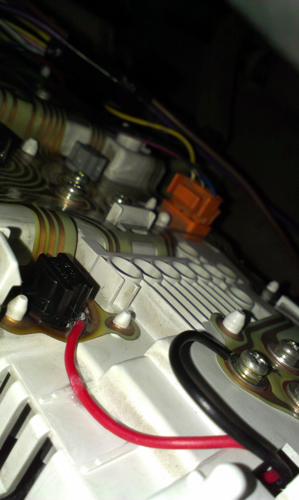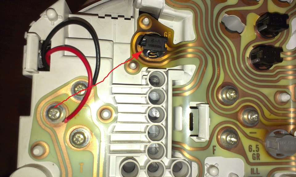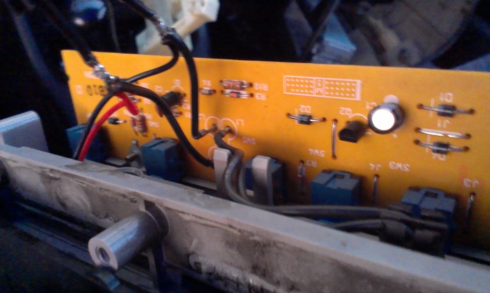 С подключением вышел косяк, увидиев обозначения + и — быстренько накрутил провода на них и побежал тестить. Приборка загоралась при включении зажигания и ни как не была связана со светом. Поэтому пришлось купить паяльник и плюс взять с дорожки питания лампочки подсветки.