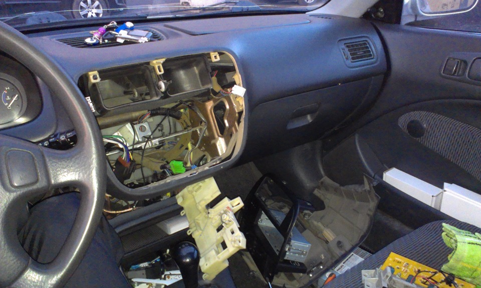 Теперь настал черед блока печки. За основу взят отчет товарища. К сожалению я упустил момент по отсоединению тросика управления заслонкой, вывернулся через жопу и выкрутил блок управления изнутри консоли.
