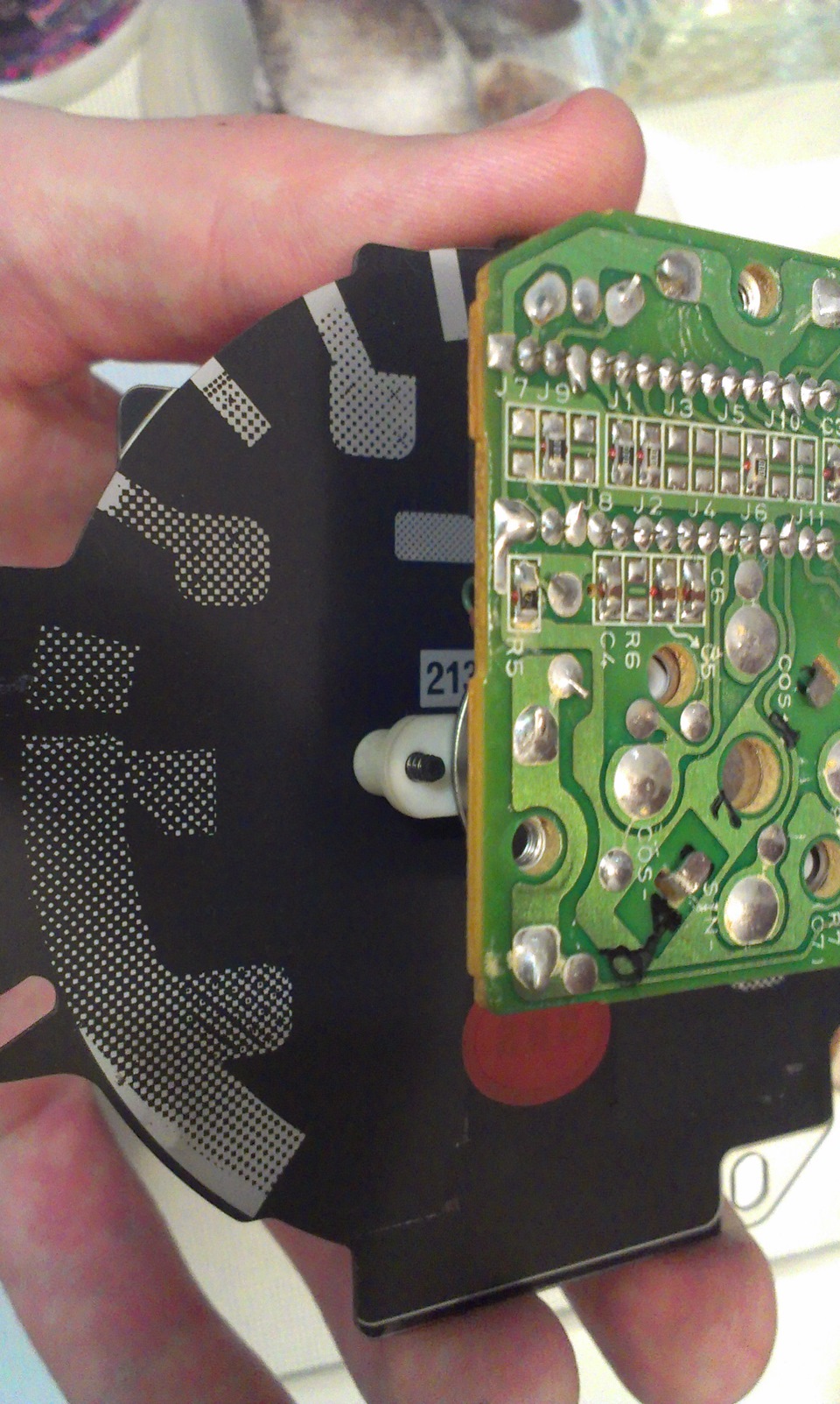 Сперва занялся приборкой, открутил, вытащил, снял стекло и открутил шкалы. С помощью растворителя и ватки стер оранжевый светофильтр на обратной стороне.