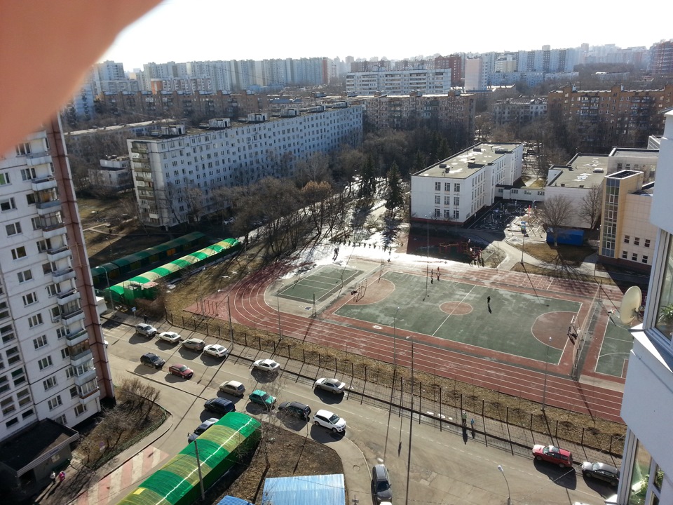 А у нас тут весна полным ходом! Теплеет, светлеет, снег исчезает, детвора на стадион выбежала мячи гонять. Класс!