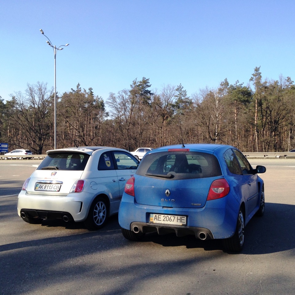 У клио были низкие 31 у Насти 30.4. В целом на трассе, особенно скоростной, как чайка с ходовыми поворотами< клио должен быть быстрее абарта, на затычных треках типа картодрома, возможно будут близкие результаты. Подвеска и база у рено более подходящие.