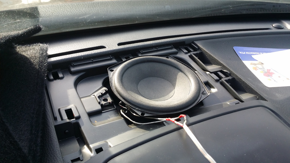 Еще центральный канал сделал тоже — подключил динамик от плюсов твитеров (от левого + на + и от правого + на -) и поставил динамик по центру на торпедо под стекло — реально середину и объем дает!👍