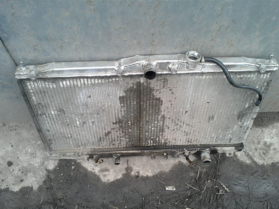 — установлен радиатор "аля тюниг", хз какой фирмы, может и Китай…сверху крышка цельноалюминивая, проварены швы…хз какой то ноунэйм…купил машину уже с этим радиатором