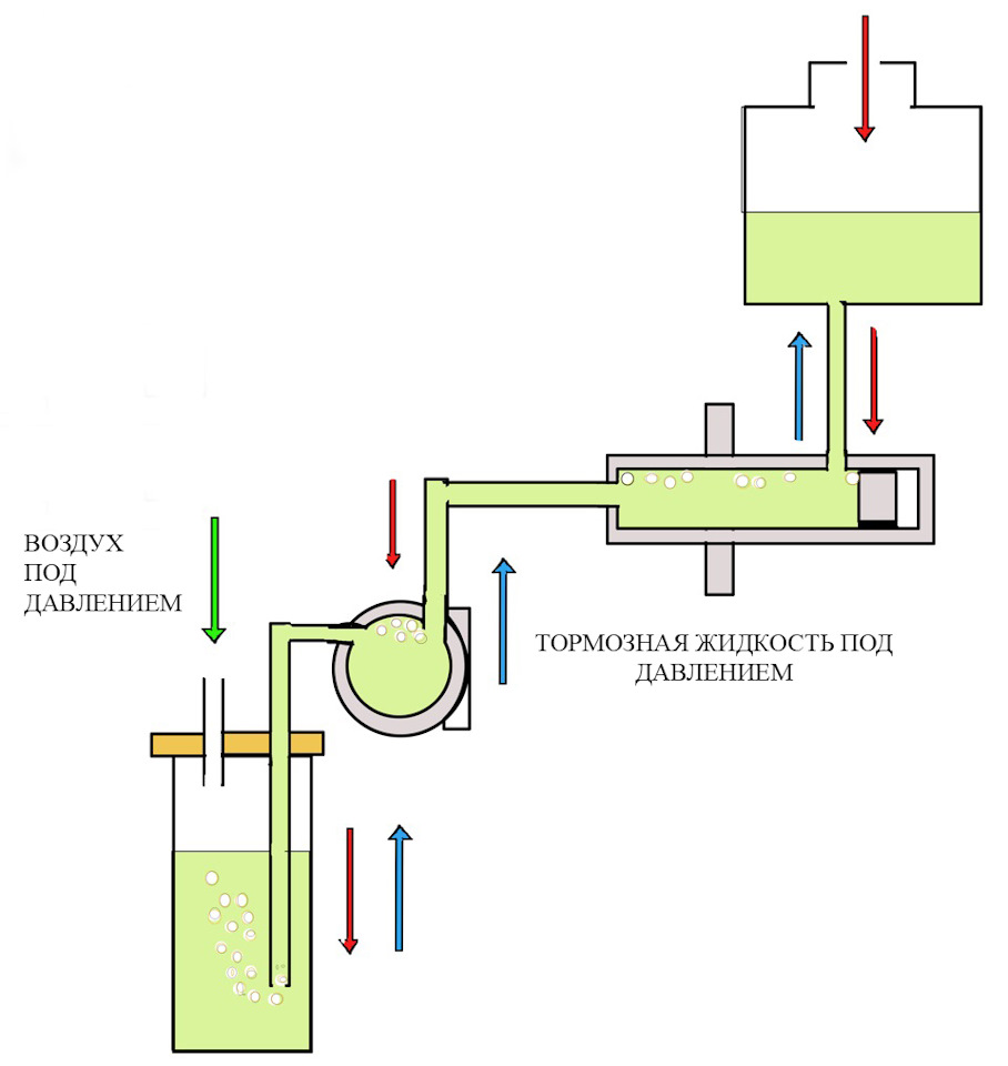Есть решение и оно очень хорошее, создать давление в верхнем бачке. Установив крышку с пипкой от камеры. При этом жидкость будет, при открытии штуцера, под давлением идти по системе до тормозного цилиндра. Очень хороший метод.