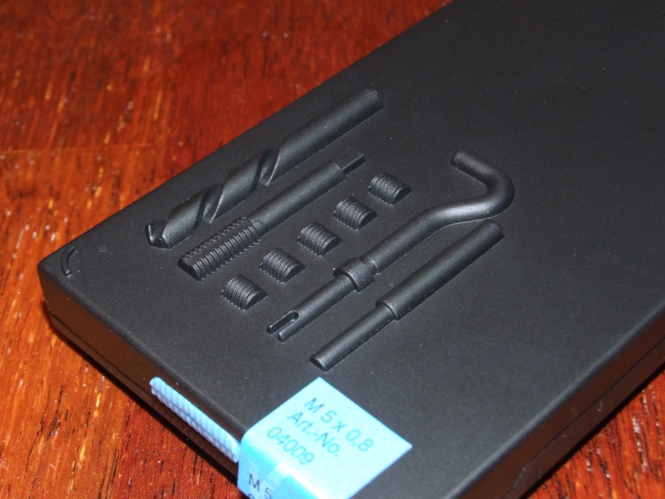 С обозначениями сразу стало понятно, что указываются именно те параметры резьбы, которые обеспечивает вставка. На метчике указано M5, хотя по факту он нарезает резьбу M6 x 1,0. Такие вот тонкости, это специальный метчик. Набор с M6 оказался ненужным. Длина вставки задаётся в диаметрах, т. е. если указано 1,5D, значит это полтора диаметра, для резьбы M5 — 7,5 мм.