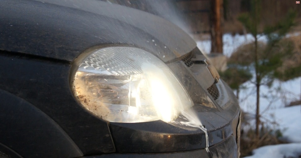 Да и ПТФ я свои всегда смочу (зимой — снегом, летом — водой) и тряпкой протираю))))) Живы! А там поликарбонат. Только от встречных камней уже посеклись. Да и стекло на фарах тоже.