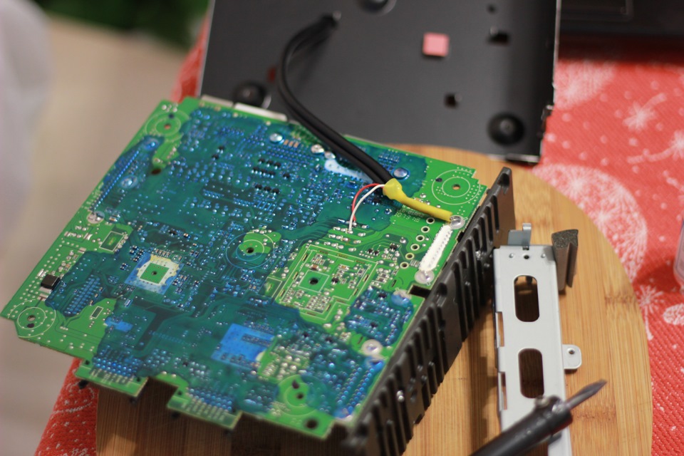 ну вот там идет 4 точки, я с левой стороны выпаял, красный потом белый. Если смотреть на твое последнее фото, то есть если у тебя с фронта вып-но, то я выпаял с тыла