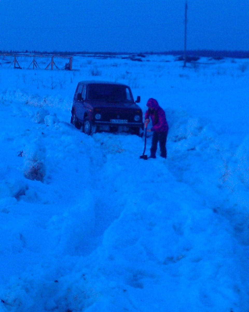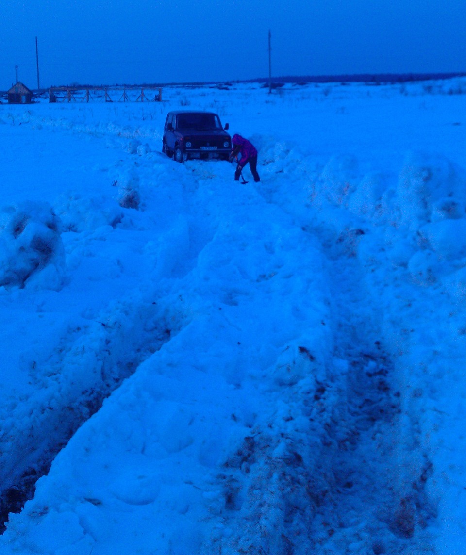 Привет всем)ну вот нашлось время прокатиться на Ниве, поехал в поля, а там снега то еще около 70см. тут увидел колею от трактора и поехал по ней пока машина полностью не повисла на днище) и так несколько раз пока не выехал на дорогу.принципе очень доволен тем как машина едет на летней резине по сырому снегу…