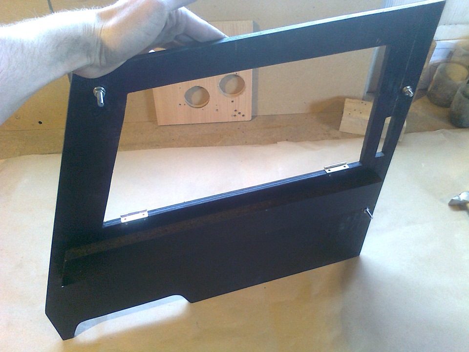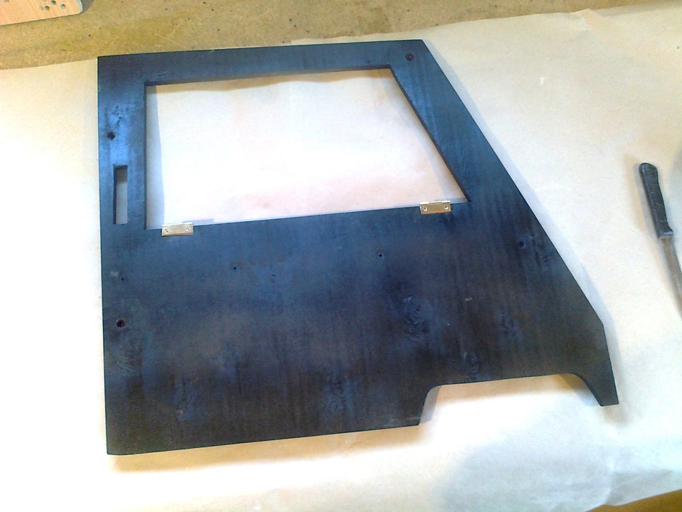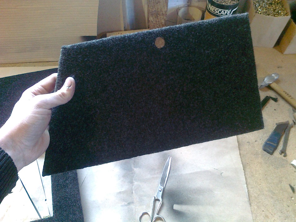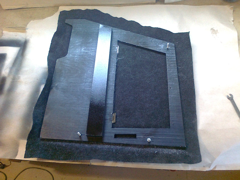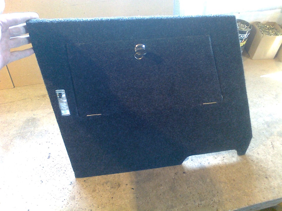 Снял и покрасил, была краска НЦ, быстренько дунул с краскопульта. Это для того чтобы при обклейке карпетом клей не впитывался в фанеру.